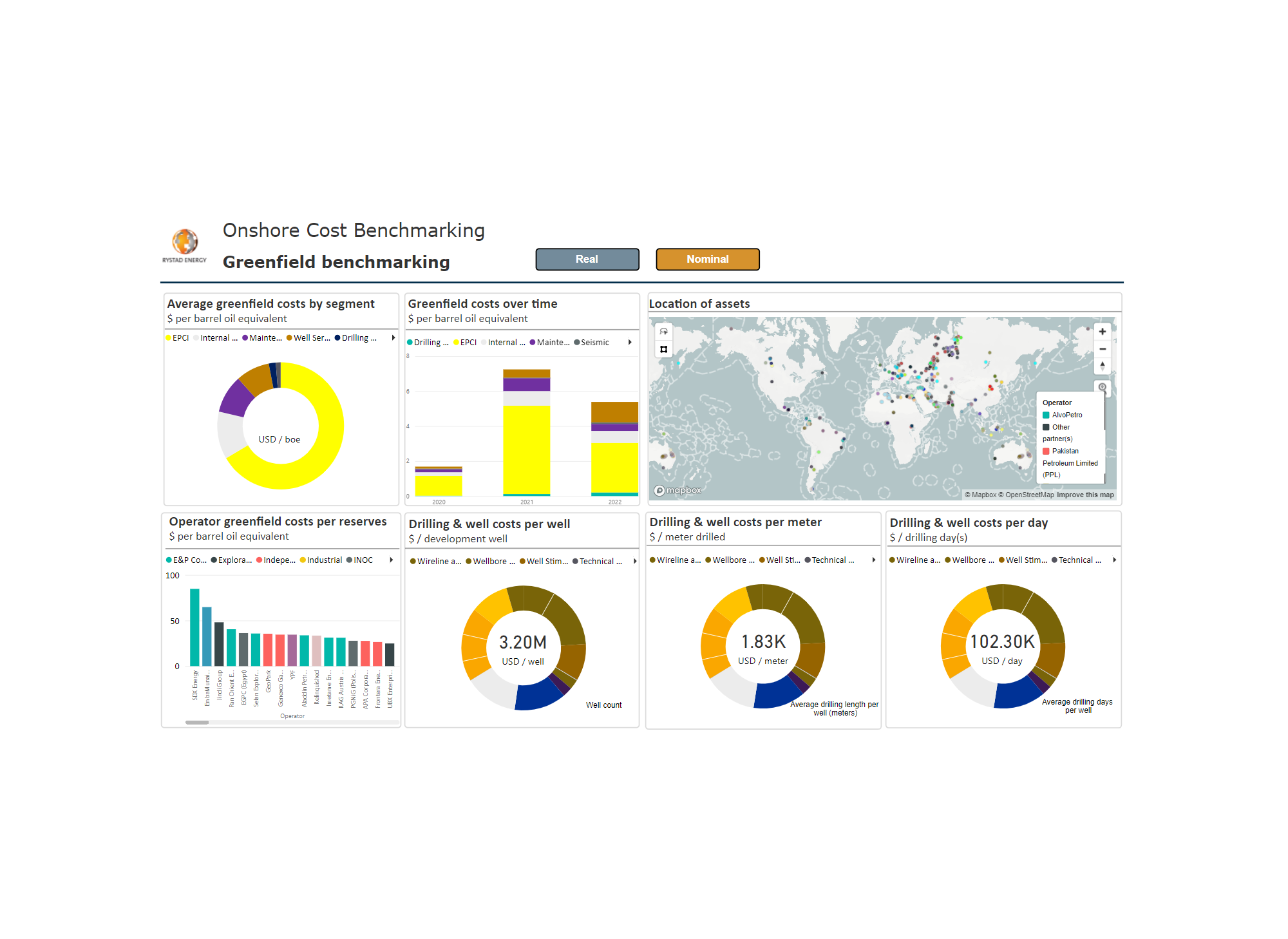 Analyze field-level project cost performance by expenditure type, segment, geography and other parameters.